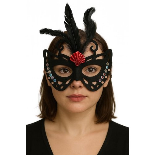 Siyah Renk Siyah Süet Kaplama Tüylü Kelebek Figür Parti Maskesi 24x18 cm