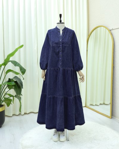 Yarım Düğmeli Kolu Lastikli Yarasa Kol Kot Elbise Laci