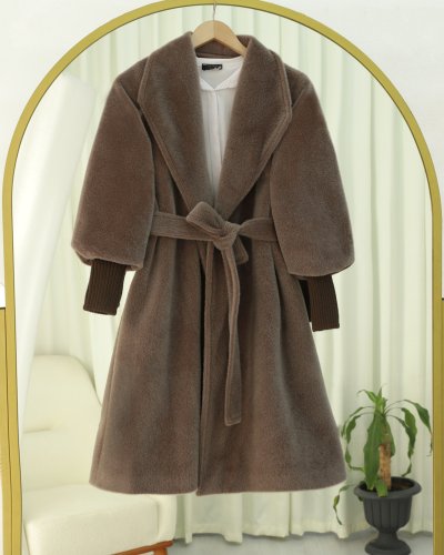 Kolu Ribanalı Şal Yaka Astarlı Kaşe Kaban Toprak