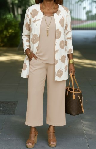 Kadın uzun kollu önü açık modal ceket kolsuz viskon iki iplik bluz ve pantolon üçlü takım