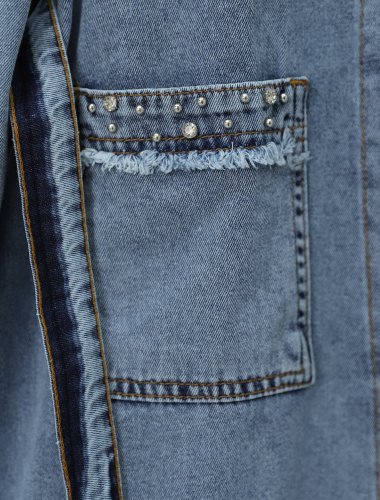 • Taş Detaylı Ceket Pantolon Kot Takım Buz Mavi