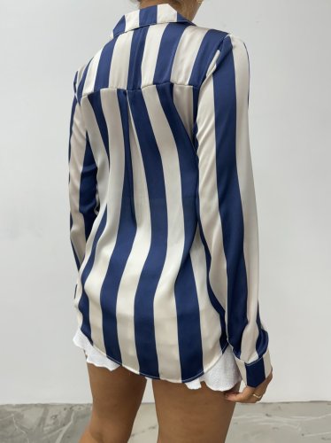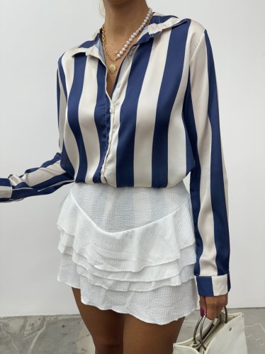 • Boydan Düğmeli Arkası Uzun Saten GömlekLaci
