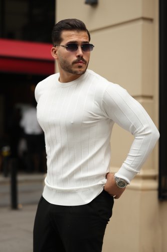 • Erkek bisiklet yaka çizgi kabartmalı uzun kollu triko