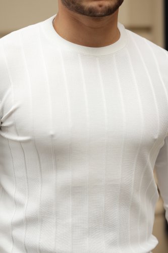 Erkek bisiklet yaka çizgi kabartmalı uzun kollu triko