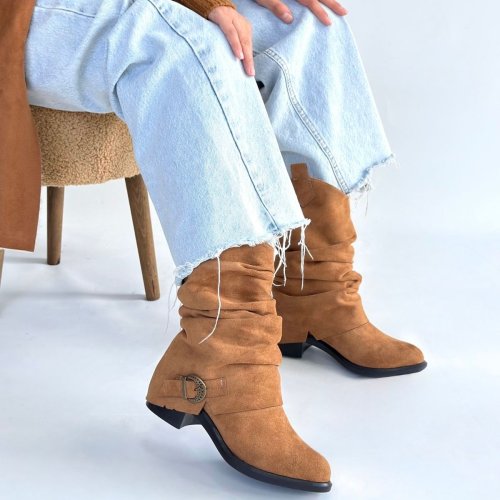 • Canty Taba Süet Körüklü Topuklu Çizme