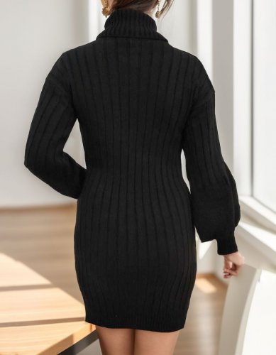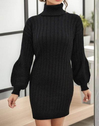 • Kadın uzun kollu boğazlı uzun balon kol triko mini elbise