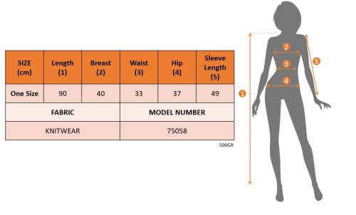 • Modelin Ölçüleri: Boy:165, Kilo:55, Göğüs:90, Bel:72, Kalça: 100