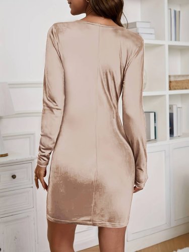 • Kadın uzun kollu kruvaze yaka kısa kadife elbise