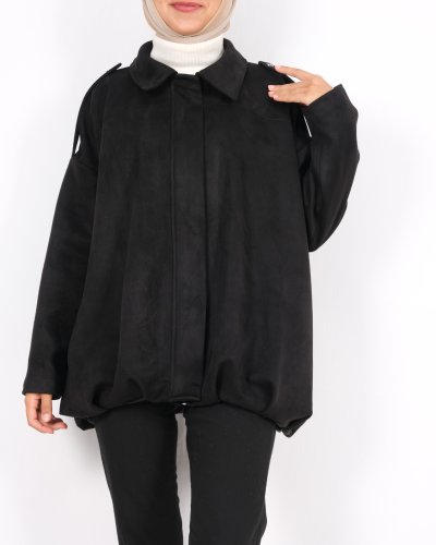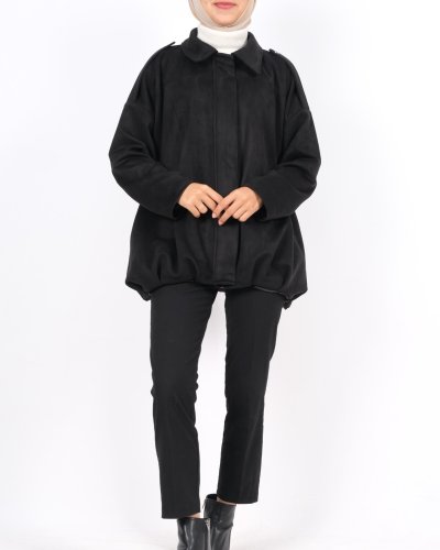 • Omzu Apoletli Önü Fermuarlı Astarlı Süet Ceket Siyah