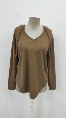 • Kadın uzun kollu v yakalı kapşonlu waffle bluz
