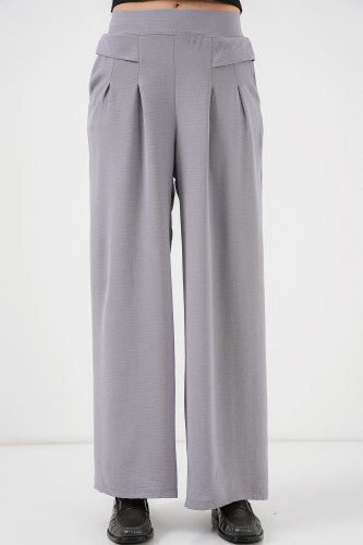 Geniş Paça Pileli Pantolon 6718 Gri