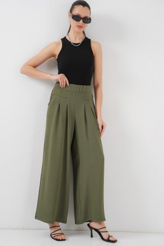 Geniş Paça Pileli Pantolon 6718 Haki