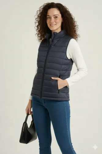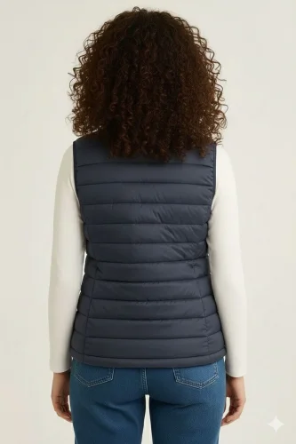 • Şişme Fermuarlı Yelek Su itici Kapitone Astarlı Kumaş Cepli Hafif Kışlık Spor Rahat Kalıp Lacivert