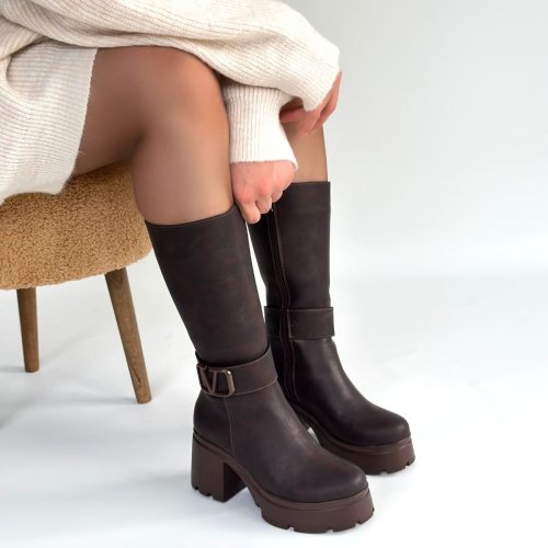 • Moki Kahverengi Nubuk Topuklu Çizme