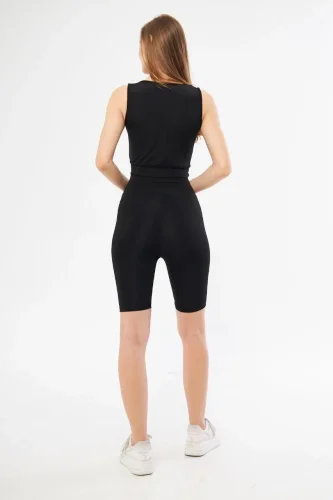 • Kolsuz Dalgiç Baskılı Crop Siyah