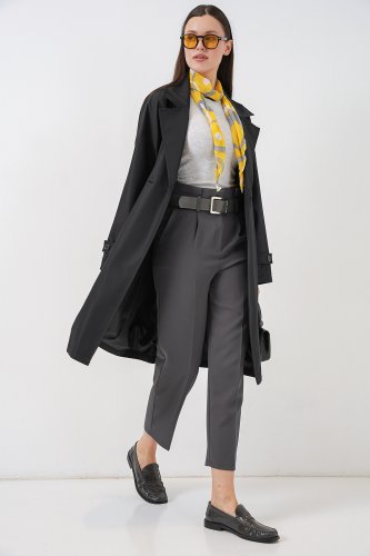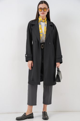 • Kruvaze Yaka Trençkot 5987 Siyah