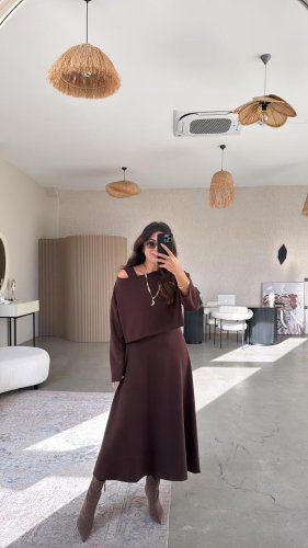 • Kadın uzun kollu bluz ve ve askılı elbise ikili takim