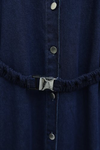 Lastik Kemerli Düğmeli Uzun Kot Elbise Laci