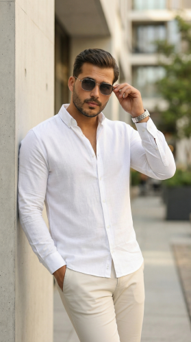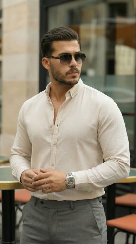 Erkek Uzun Kollu Rahat Keten Gömlek