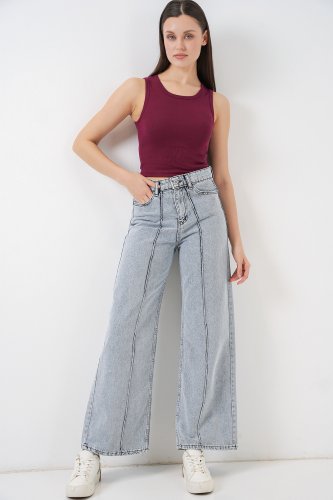 Bol Paça Yüksek Bel Palazzo Kot Pantolon 6656 Gri